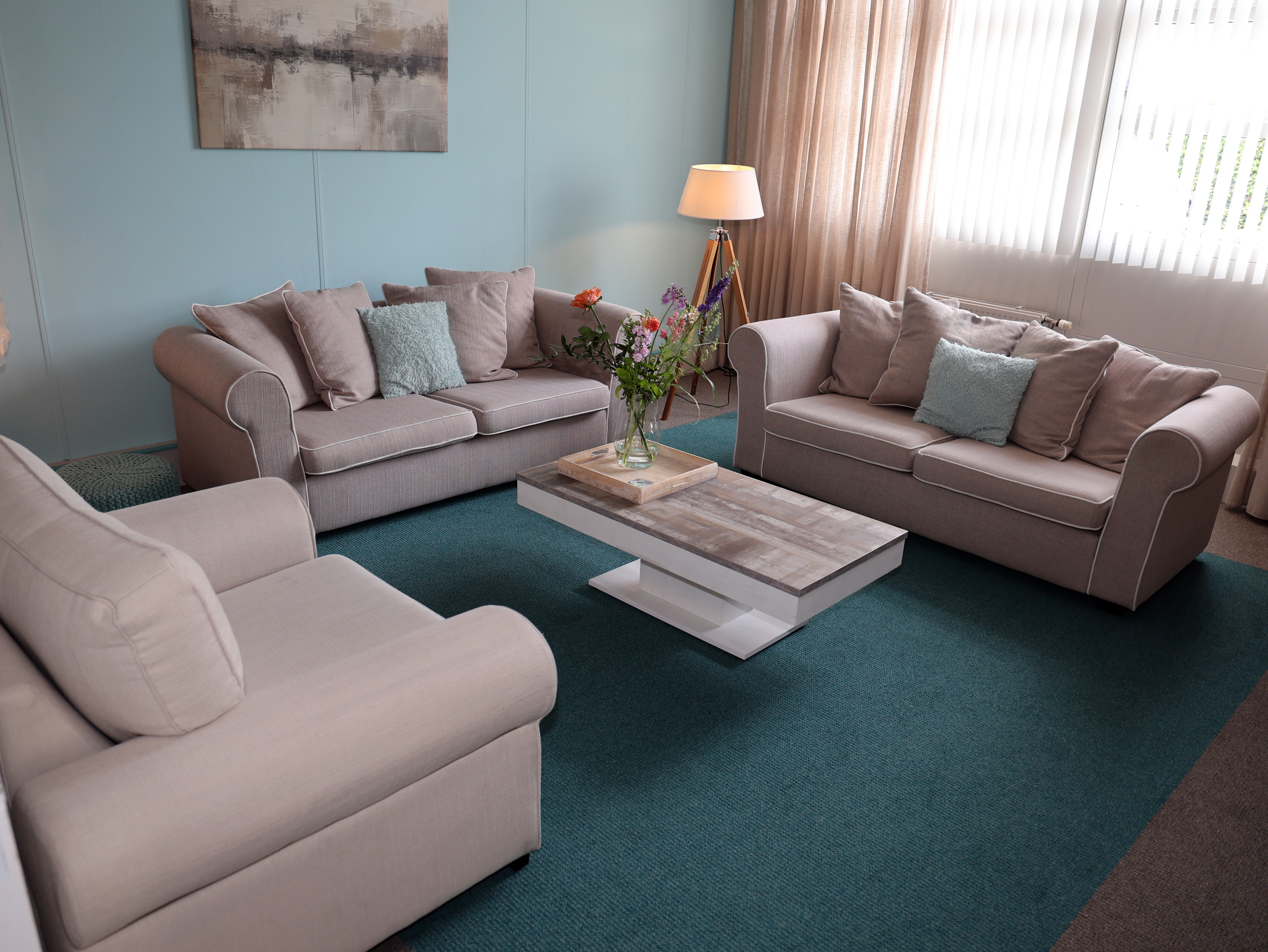 De ‘Aqua’ is de grootste kamer, in de kleuren turquoise en beige. De ‘Terra’ is ingericht in sfeervol bruin/grijs met oranje. Wanneer u van deze kamers gebruikt maakt, kunt u koffie of thee pakken in onze woonkeuken. In hetzelfde pand bevindt zich ons kantoor, dus tijdens kantoortijden kan het zijn dat we elkaar tegenkomen op de gang. U krijgt een eigen sleutel en bent vrij om 24 uur per dag de kamers te gebruiken.